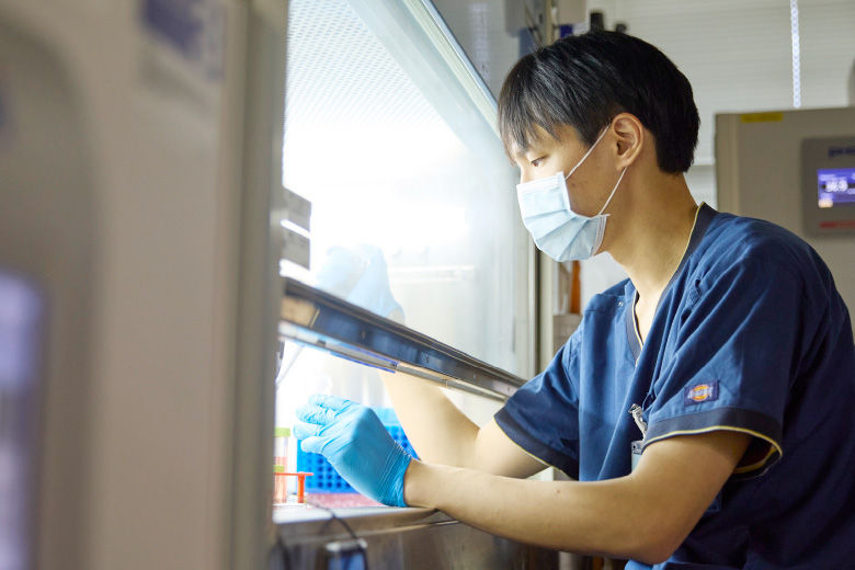 遺伝子治療の研究も盛んで、従来より米国NIHとの共同研究でレトロウイルスベクターを用いた遺伝子治療の基礎研究を展開してきましたが、癌研究会との共同研究でアデノウイルスベクターの研究を開始し、現在、腫瘍組織特異的に目的遺伝子が発現するシステムを確立しました。また、複数の大きな遺伝子を同時に安定して導入可能なAVIPOX virusを用いた新世代のベクターに関する研究も行ってきました。現在では、将来の臨床応用に備えて、「抗がんウイルス療法」の研究へと舵取りし、他施設との共同研究を継続中です。